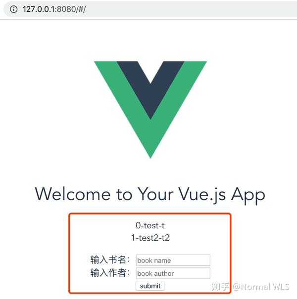 启动前端项目,浏览器访问127.0.0.1:8080,可以看到刚写的页面已经更新上去了,丑是丑了点,意思到了就行~如下图: