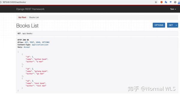 对于books应用中的内容,如果对DRF和Django流程熟悉的同学肯定知道都干了些什么,篇幅关系这里只能简单解释,DRF通过视图集ViewSet的方式让我们对某一个数据类Model可以进行增删改查,而且不同的操作对应于不同的请求方式,比如查看所有books用get方法,添加一本book用post方法等,让整个后端服务是restful的。如果实在看不懂代码含义,只需知道这样做之后就可以通过不同的网络请求对后端数据库的Books数据进行操作即可,后续可以结合Django和DRF官方文档对代码进行学习,或关注本人未来分享的内容。