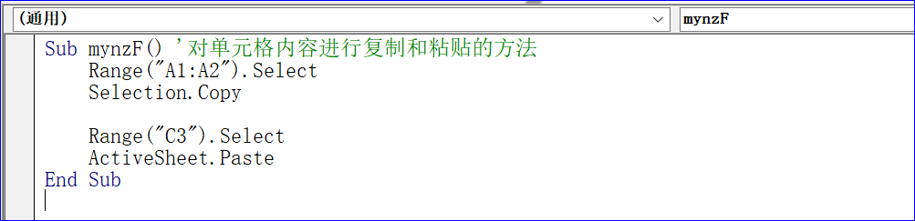 Sub mynzF() '对单元格内容进行复制和粘贴的方法