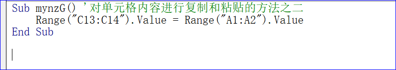 Sub mynzG() '对单元格内容进行复制和粘贴的方法之二