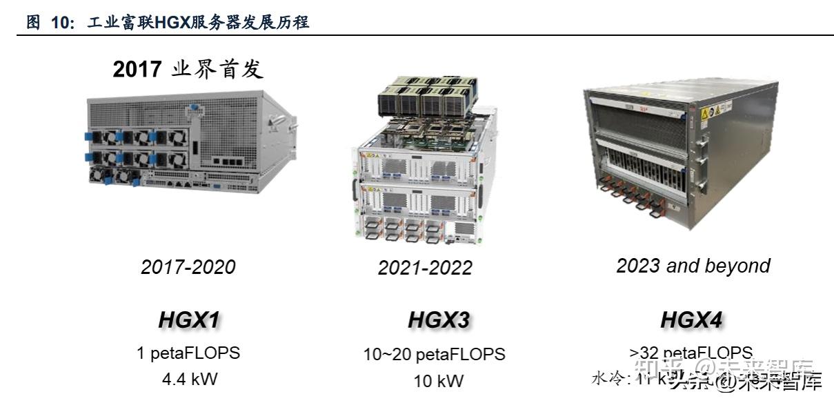 2017年,英伟达与微软和鸿佰科技(富士康旗下公司)共同发布第一代HGX-1系 统,搭载八颗Tesla P100 GPU以实现高效AI计算功能。在此之后,公司随英伟达 GPU产品升级,持续对HGX系统升级,陆续推出HGX3/HGX4系列产品,其中 HGX4运算能力达到HGX1的32倍,可支持高效的平行运算能力,助力行业迎接AI 带来的时代改变。