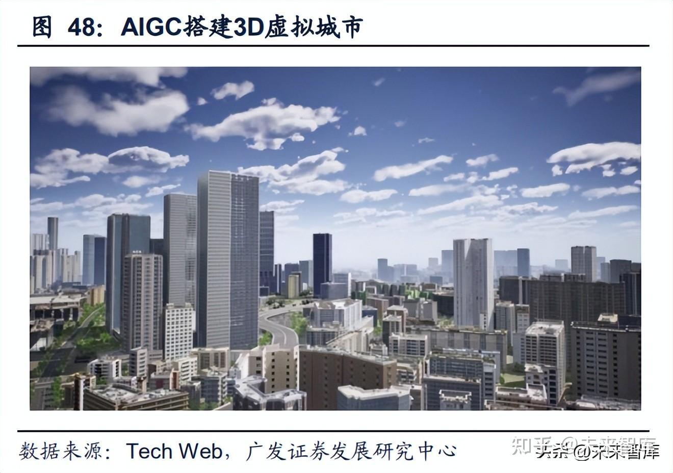 AIGC逐渐实现元宇宙的可扩展性潜力,低成本、高效率地满足VR/AR用户海量内容 需求。以AR/VR作为入口,元宇宙极大扩展了人类在虚拟世界的生存空间。但元宇 宙中需要大量3D场景构建,高保真3D模型单靠人工设计开发效率低、成本高。AIGC 有望成为新的元宇宙内容生成解决方案,利用AI方式生成3D场景将成为未来元宇宙 满足海量用户不同需求的解决之道。具体而言,AIGC技术通过提供元宇宙环境生成 的基础设施、提供个性化内容体验和交互方式等,更好地满足用户需求。 AIGC释放开发人员生产力,为构建沉浸式元宇宙空间环境提供核心基础设施技术。 元宇宙可以应用在工作、会议、游戏以及生活社交等活动,因此需要在元宇宙空间 中创建丰富的活动对象、建筑和活动环境。但是,在过去,为了构建这些数字环境, 需要开发团队半手工地创建每一个部分,用鼠标拖动来放置。而现在AlGC通过实现 创建逼真的3D虚拟空间环境、虚拟人物,并且效率和成本可以满足大规模的元宇宙 空间环境创建。例如在游戏场景中,未来游戏的剧情、角色、头像、动作等数字原生 基本元素都可以用AIGC进行生成,游戏世界地图也能通过AIGC进一步延展,极大程度释放开发人员生产力,用更少的时间编写代码,提升元宇宙建成速度。