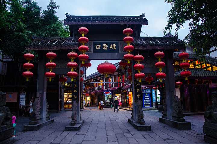 特色:古镇磁器口有12条街巷,街道两旁大多是明清风格的建筑,地面由石板铺成,沿街店铺林立。古镇三宝(毛血旺、烩千张皮、椒盐花生号称古镇三宝或称三绝)、古镇三多(庙宇多、名人足迹多、茶馆多,如宝轮寺、云顶寺等)人间的烟火曾让磁器口装满了沧桑,如今的磁器口如一部风物志,它静静存在,等着你到来。