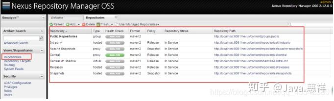 部署自己的 jar 到这个类型的仓库包括 releases 和 snapshot 两部分:Releases 公司内部发布版本仓库、 Snapshots 公司内部测试版本仓库