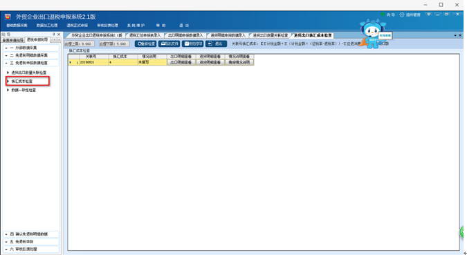 3、免退税申报数据检查 在退税向导的第三步“免退税申报数据检查”中先进行进货出口数量关联检查,检查同一关联号下,同一商品,出口数量与进货数量是否相等。