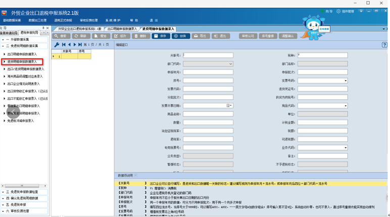 进货凭证号: 增值税专用发票的发票代码+发票号码共同组成的18位数字。 注意: 如果超过一条数据,需要进行序号重排。对于录入完成的出口、进货明细数据需要进行“审核认可”,审核认可后标志变为“R”才算成功。
