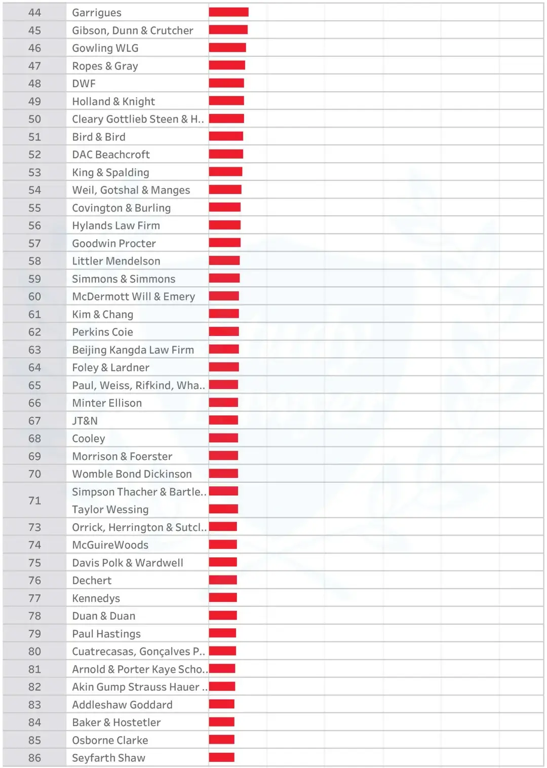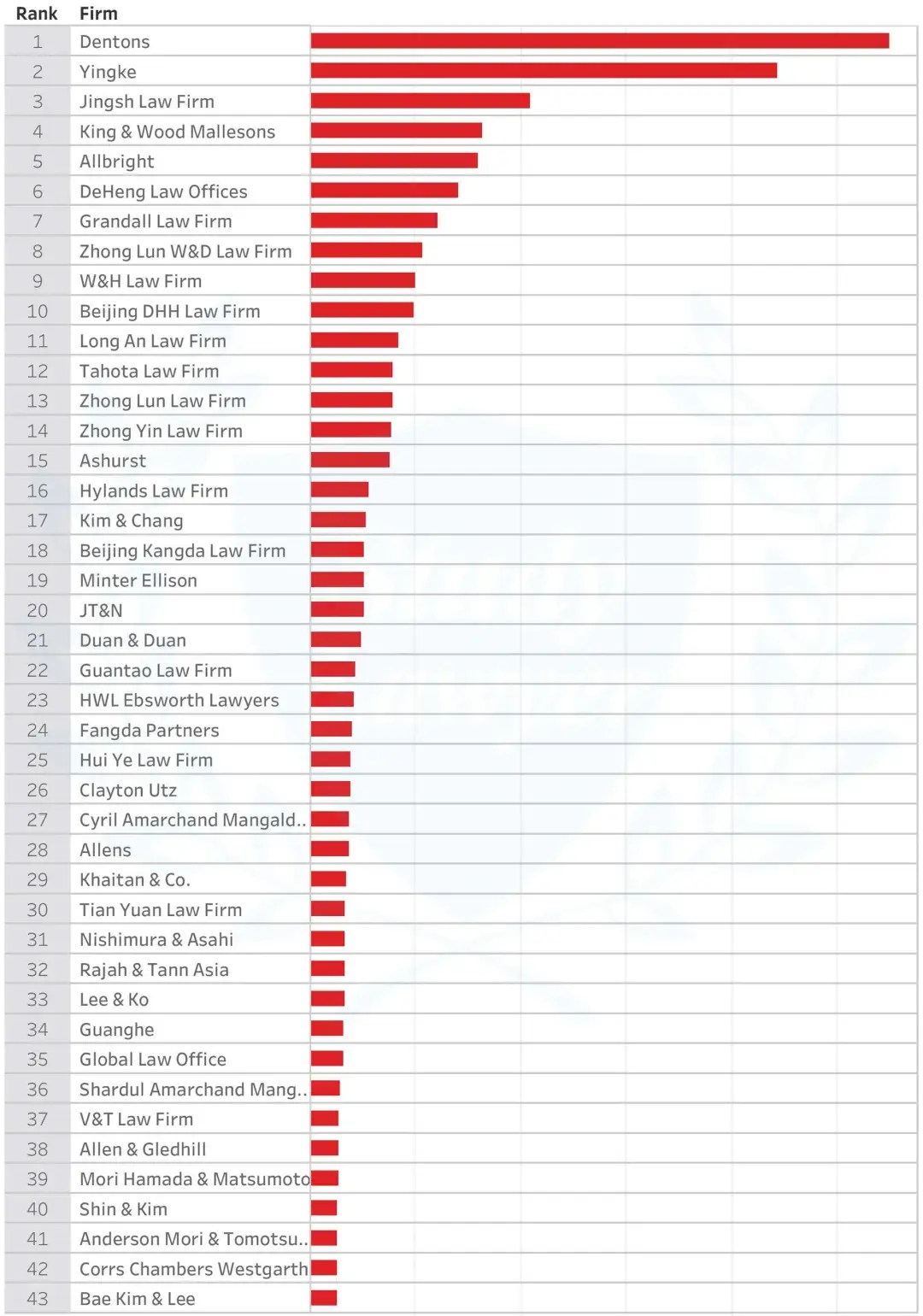 接下来我们再来关注一下中国律所的表现。