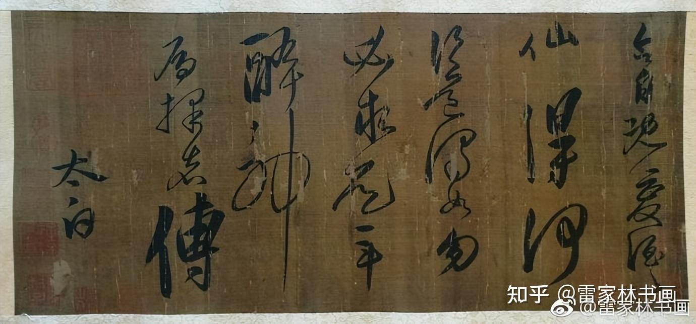 (绢本周文矩《李白携琴醉归图》,绢本李白《爱酒帖》现藏黄楷夫工作室)