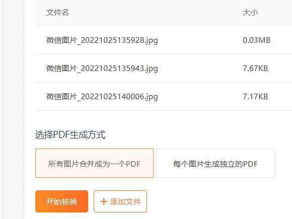 文件上传后也可以调整合并顺序,然后选择所有图片合并成为一个PDF,点击开始转换,转换完成后下载文件即可。