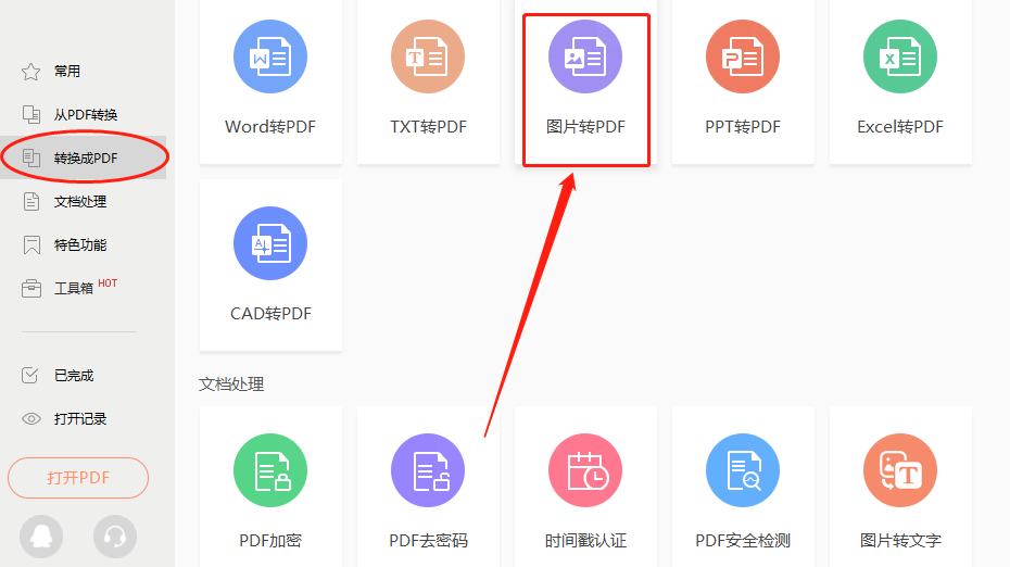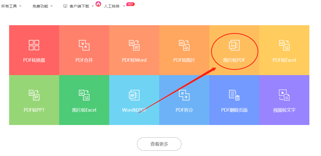 第一步:点击跳转链接,进入初始页面,直接点击图片转pdf功能。
