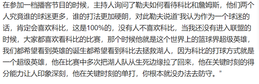 写下这篇文章耗时耗力,对于我个人来说,是一种享受和快乐。目前詹姆斯还没退役,篮球的故事还在继续,他的故事很复杂,就我个人来说,不喜欢他的风格。这只关乎于个人喜好的问题,所以我一直很讨厌詹姆斯球迷对其他球星和他们的粉丝进行人身攻击。