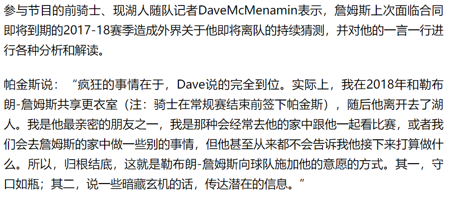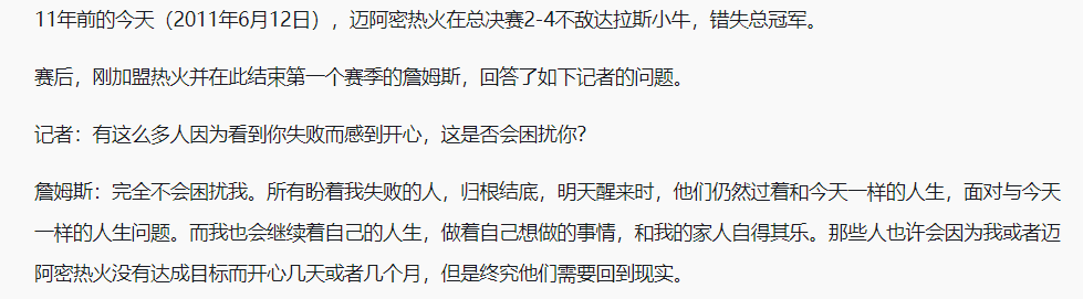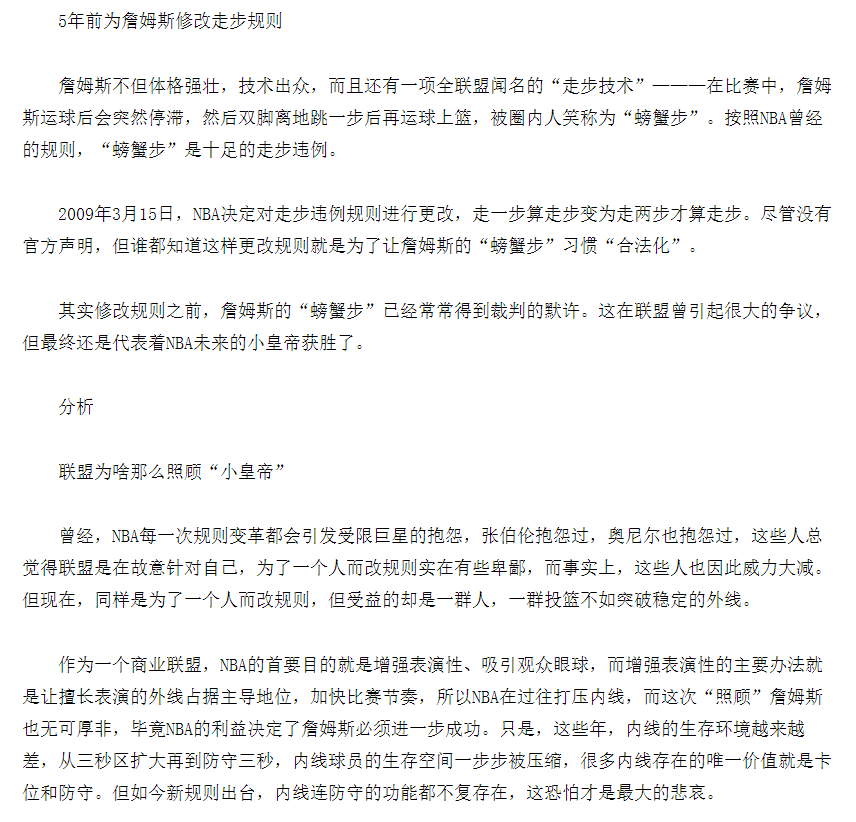 这篇文章详细地分析了热火抱团事件的始末,西强东弱的格局影响等,以及总结了不少稀有的资料,介绍了詹姆斯场上场下的许多故事,也对近年来常见的一些言论(例如克利夫兰小城,詹姆斯控股媒体等)做出了我的解释。
