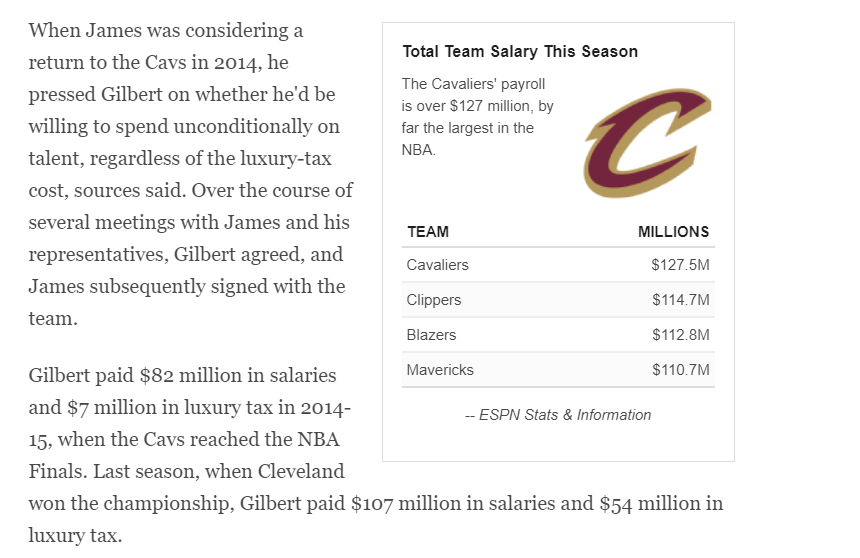 08—09赛季,骑士队总薪资9130万排名联盟第三(当赛季总冠军湖人7825万排名第六)