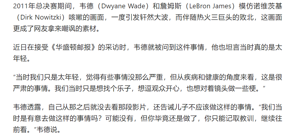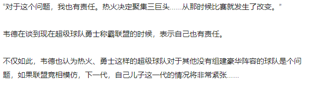 ,包括但不限于:队友实力不行,加盟前的韦德单核热火47胜还不够好等等