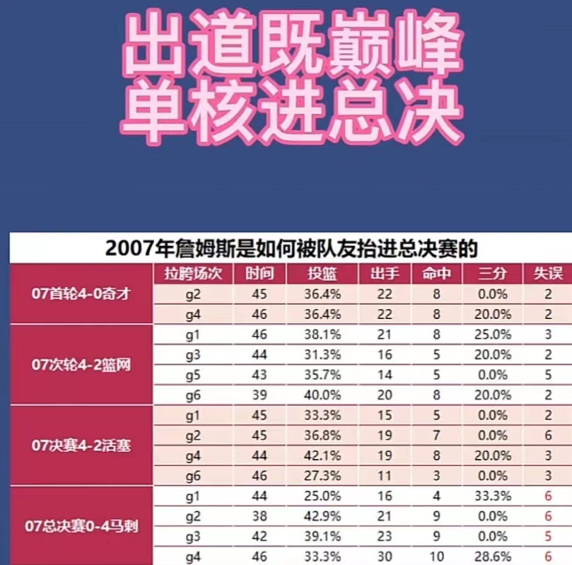 安托万·贾米森去骑士之前(09—10):20.5+8.8,两次全明星! 07年季后赛场均32+9.8,当季季后赛第一的OBMP