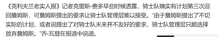 詹姆斯在休赛季 一直含糊其辞,不告知任何人自己的去向,导致骑士既不敢引援也不敢交易 , 只能被动等待,最终只能答应和詹姆斯先签后换,送他去热火。 你以为詹姆斯是为了骑士好?