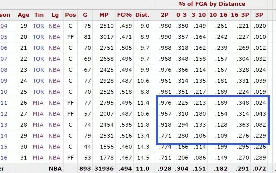 突破?巅峰时场均篮下出手将近7次,命中率将近75%