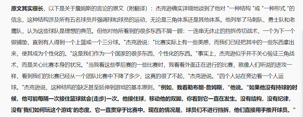 在文末比较详细地分析了迈克尔·乔丹和他的时代,举例96和超音速的总决赛,93年对阵尼克斯的东部决赛。这一部分是我最喜欢的内容,比较有趣的是聊了聊所谓的高阶数据,