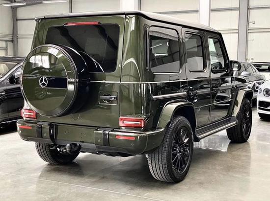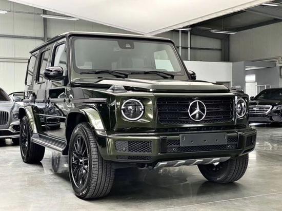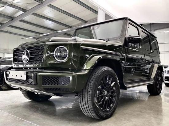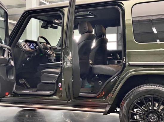 Mercedes-Benz G400d Stronger Than Time奔驰 G400d 时光铭刻版配置:255 车体 奔驰G定制 橄榄金绿971 座椅 奔驰G定制 金色撞线Nappa黑色真皮[J40 Stronger Than Time 强悍超越时空版特套装][主动式 多轮廓舒适座椅包][64色氛围灯][AMG生产线LINE][驾驶辅助包][BURMSTER音响][黑木饰面][EASY PACK 后备箱遮盖][不锈钢包][自适应减震][真皮把手][100升大油箱][暗夜包][360°驻车辅助包][滑动天窗][隔离网][拖车钩预备][驾驶及副驾驶安全马甲][宽屏]B24 遥控预热EG1 车内通话
