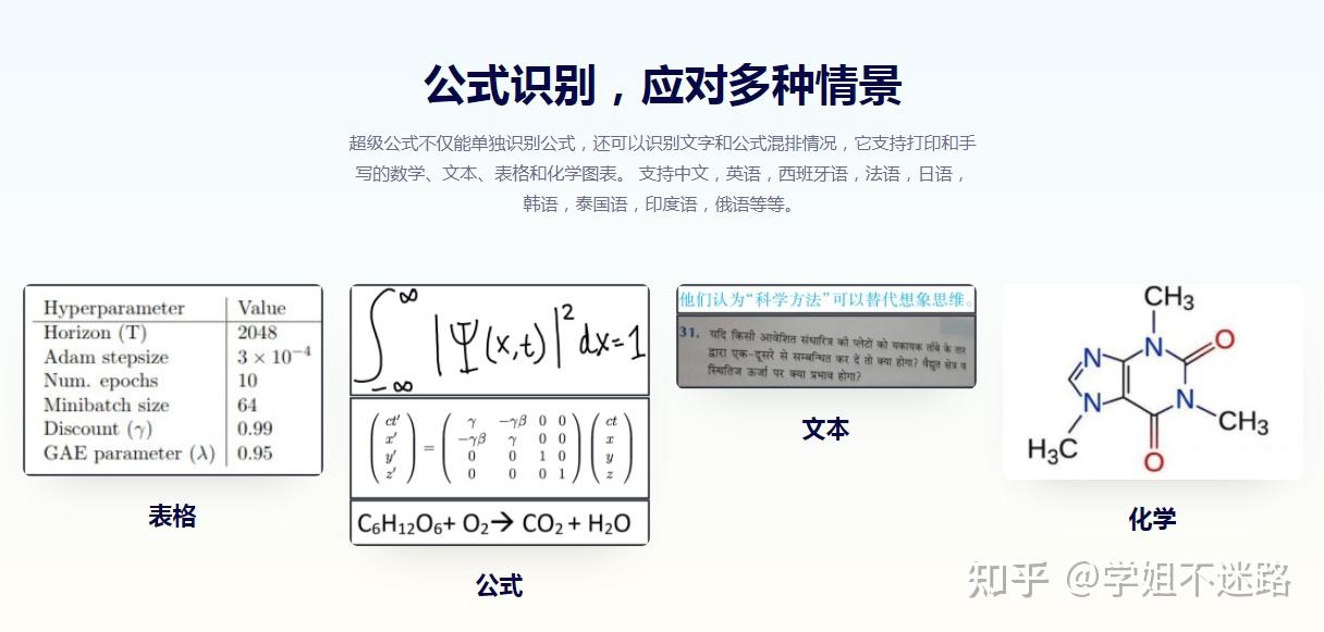 大家可以看到超级公式的OCR识别效果,不软是中文,英文,多复杂的公式,都能轻松搞定,这是一般软件实现不了的。(ps:其他软件不是识别不出漏掉内容,就是公式识别成乱码)
