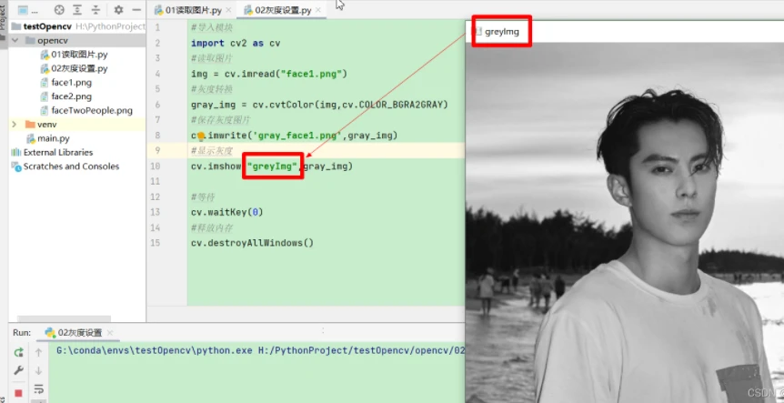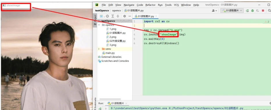 在代码中输入的完整路径(需要把右下划线改为左下划线): G:/conda/envs/testOpencv/Lib/site-packages/ CV2 /data/haarcascade_frontalface_alt2.xml