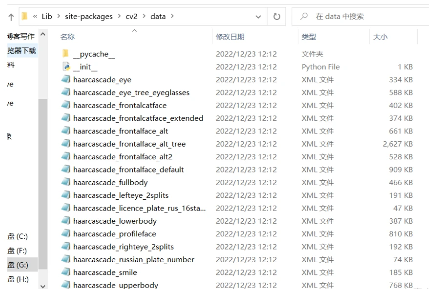 OpenCV分类器路径:G:\conda\envs\testOpencv\Lib\site-packages\ CV2 \data