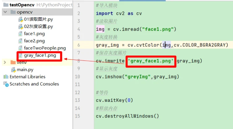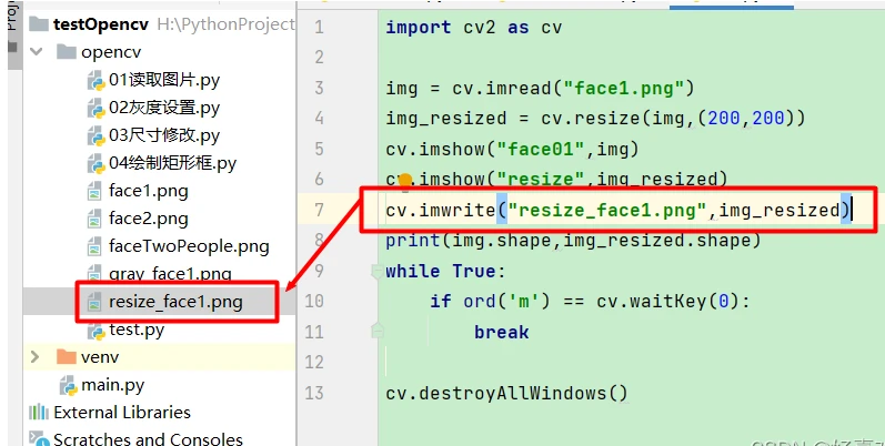 当按下s键时,使用 CV2 .imwrite方法对图片进行保存,图片的保存路径和命名方法按自己的习惯来;我的保存路径是H盘的face_detect_save文件夹,命名格式为People(num).face.jpg。