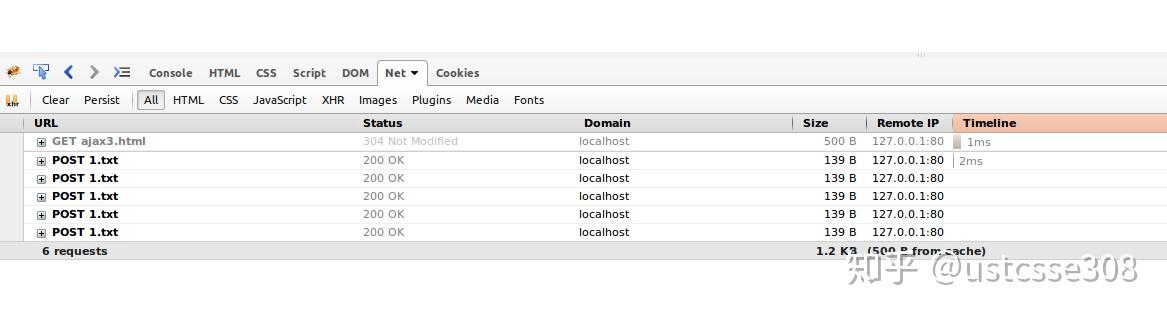 多次点击。甚至在修改了1.txt的内容之后,GET方式在一定时间内,是不会真正重新发送请求的,它会优先使用缓存。