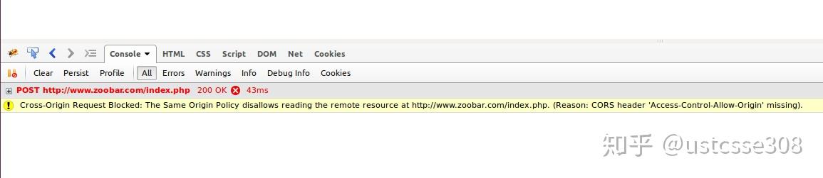 也能够正常接收cookie并保存;但是在 http:// zoobar.com ,会报错: