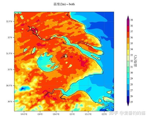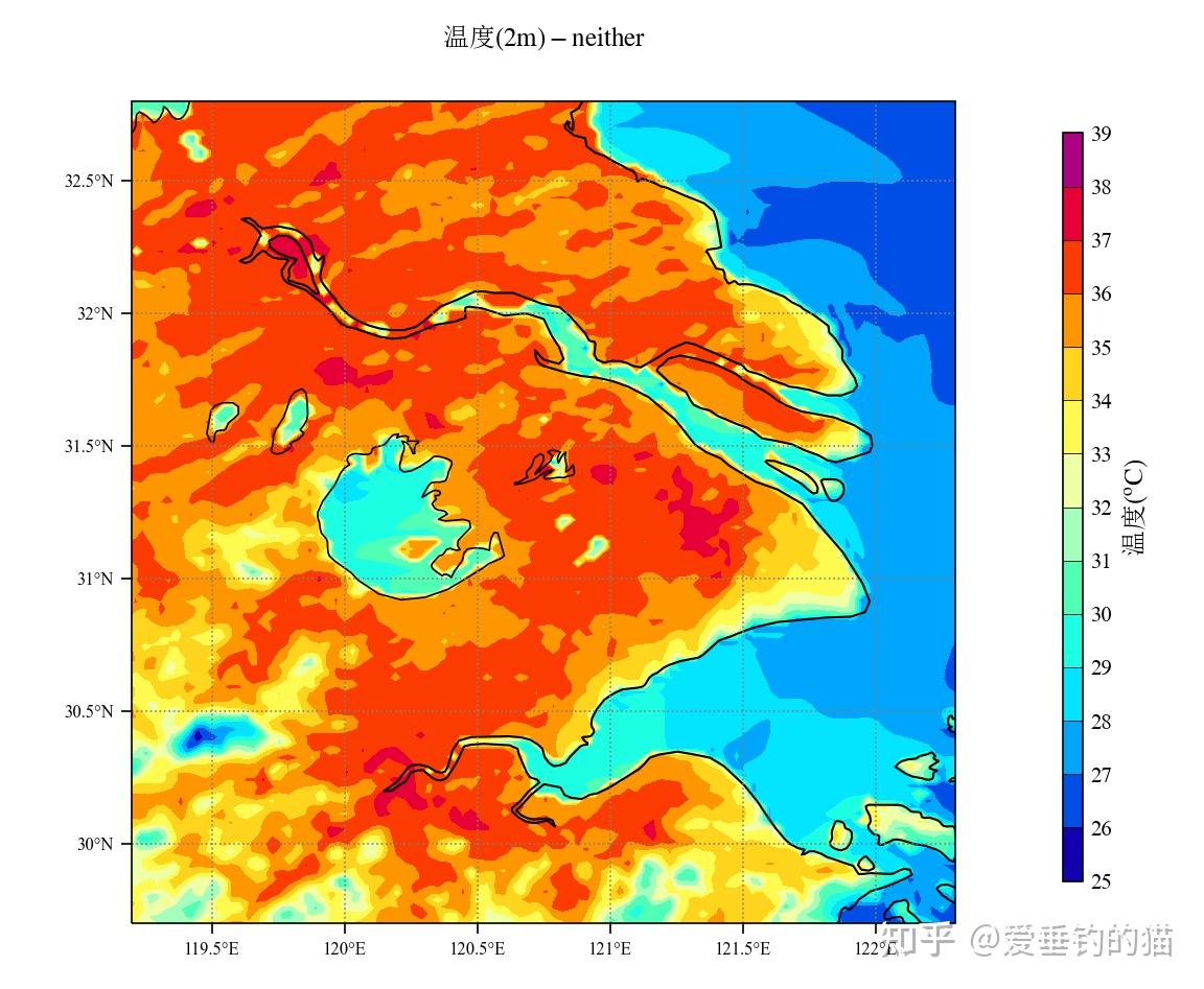 第一个参数是x轴的数据,在气象绘图中也就是经度;第二个参数是y轴的数据,即纬度;第三个是填充数据,可以是温度、湿度、污染物浓度等。这三个参数均可以是一维的也可以是二维的,只要保证数据的尺寸相同即可,并且可以是pandas的列表,也可以是ndarray,也可以是list,xarray,netcdf,使用起来较为方便。