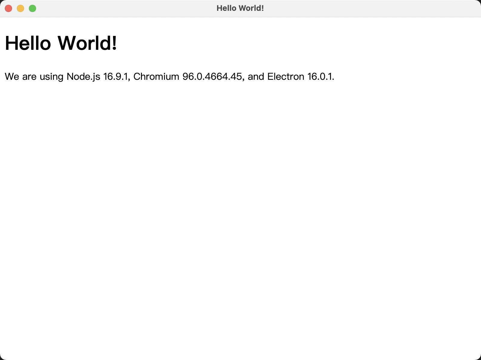 此时,你就会看到一个带着 Hello World 的窗口,这就是 Electron: