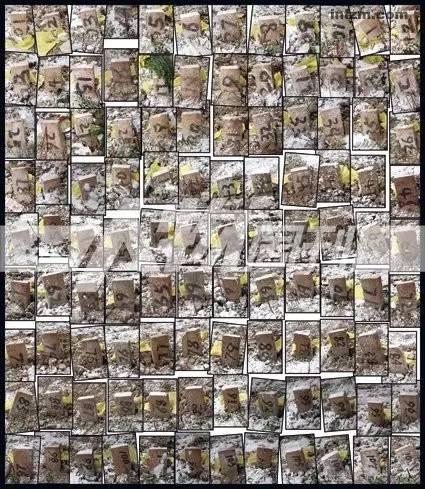 2008年5月26日,四川绵阳什邡市李冰村一个山岗上,埋葬着在“5·12”地震中失去生命的108个洛水中学的学生。他们的墓碑,没有名字,只有编号。图/严志刚,图片来源:南方人物周刊