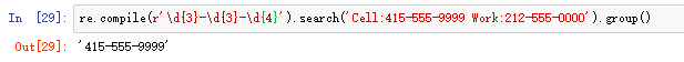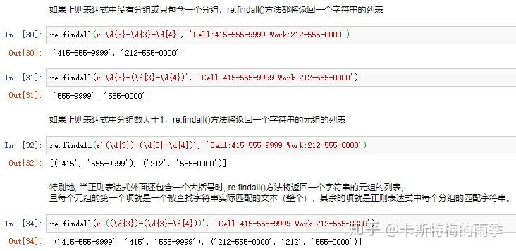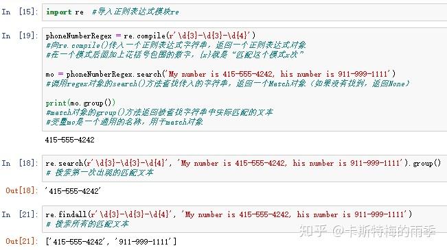 上面分别使用了re.compile().search()、re.search()和re.findall()三种方法来搜索目标字符串中的电话号码,详细的讲解留到后面,暂时不深究。