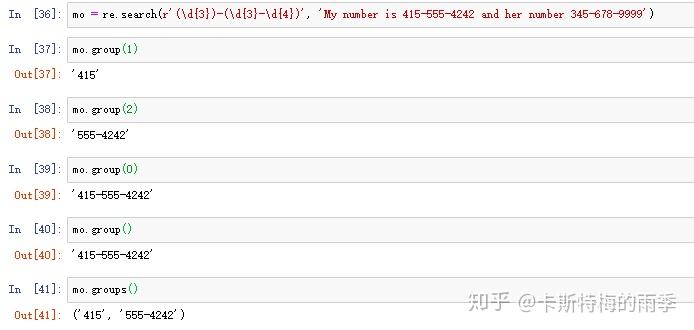 如果想要把区号从电话号码中分离,可以在正则表达式字符串中添加括号来创建分组,如(\d{3})-(\d{3}-\d{4}),正则表达式中第一对括号是第一组(数字1),第二对括号是第二组(数字2),以此类推。