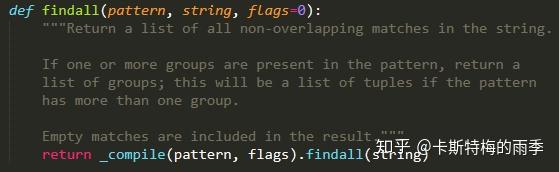 再打开re.py,我们发现re.search()和re.findall()方法内部都调用了re.compile()中的_compile()方法,这里要说的其实就是我们完全可以用re.search()取代传统的re.compile().search(),用re.findall()取代re.compile.findall():