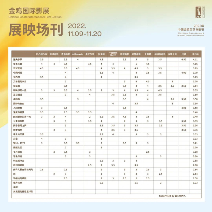 2022金鸡国际影展场刊总榜