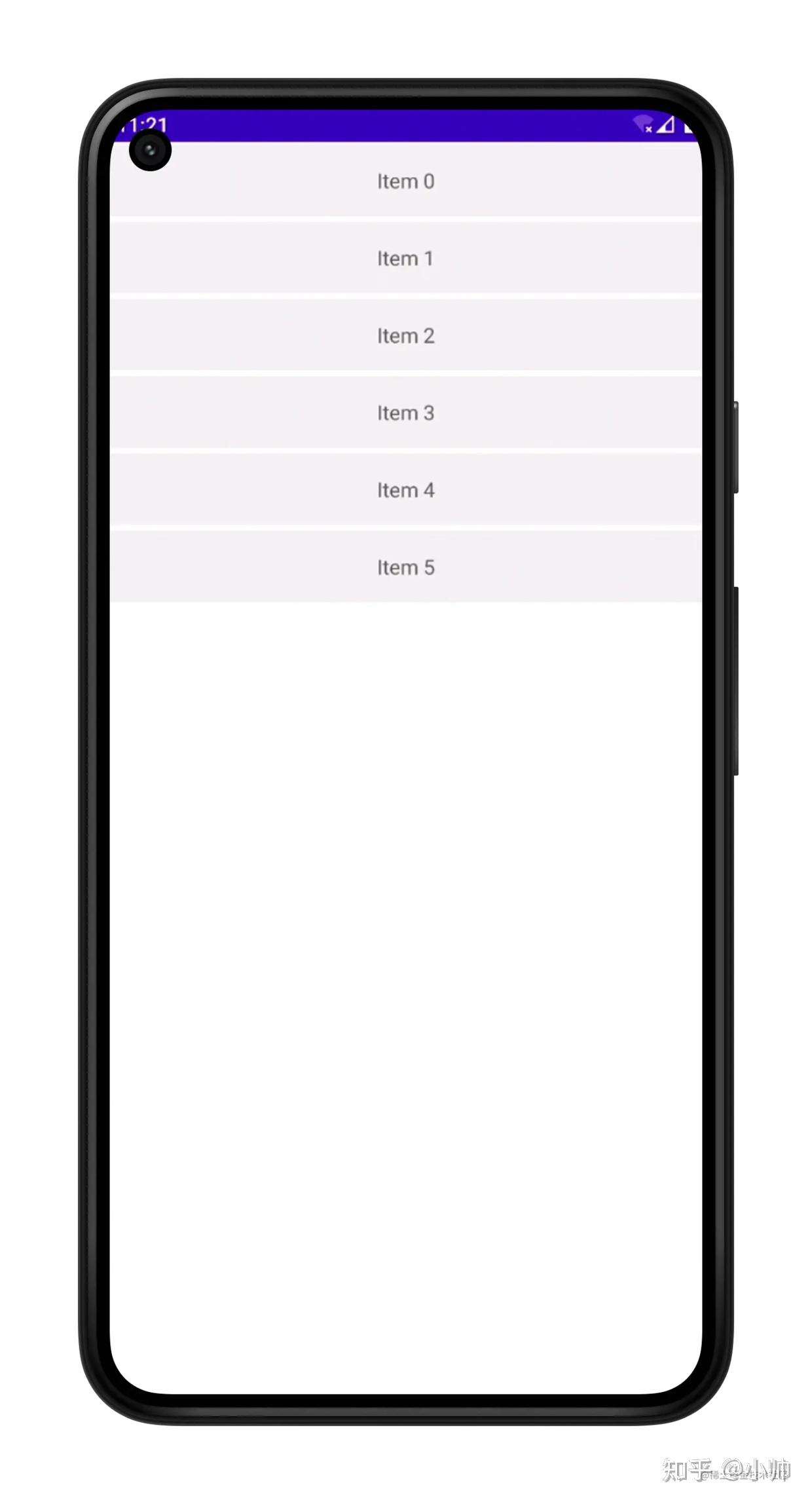 代码很简单,有一个 List 类型的 data 变量,里面存放的是 String 类型的数据,在初始化的时候向里面添加了 5 条测试数据。