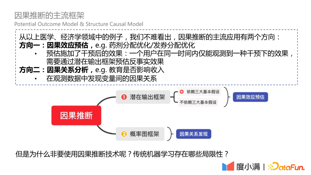 上面的这些例子反映了 目前主流的因果推断的框架 :