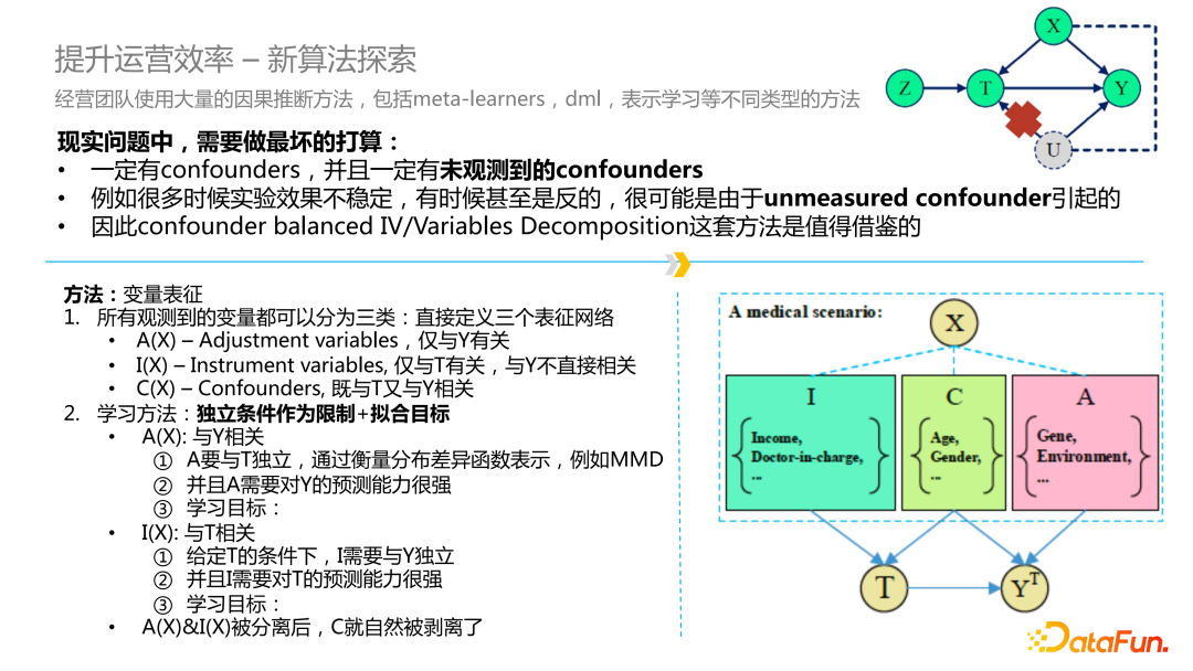 这种是一种比较朴素的想法,我们更多的是关注变量分解的方法,从观测到特征剥离混淆因子、工具变量和协变量,并进行一些表达。