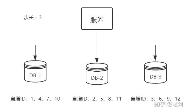 从上图可以看出,水平扩展的数据库集群,有利于解决数据库单点压力的问题,同时为了ID生成特性,将自增步长按照机器数量来设置。