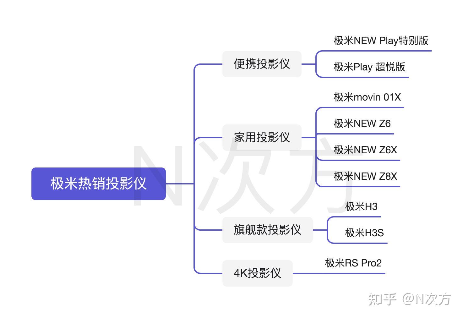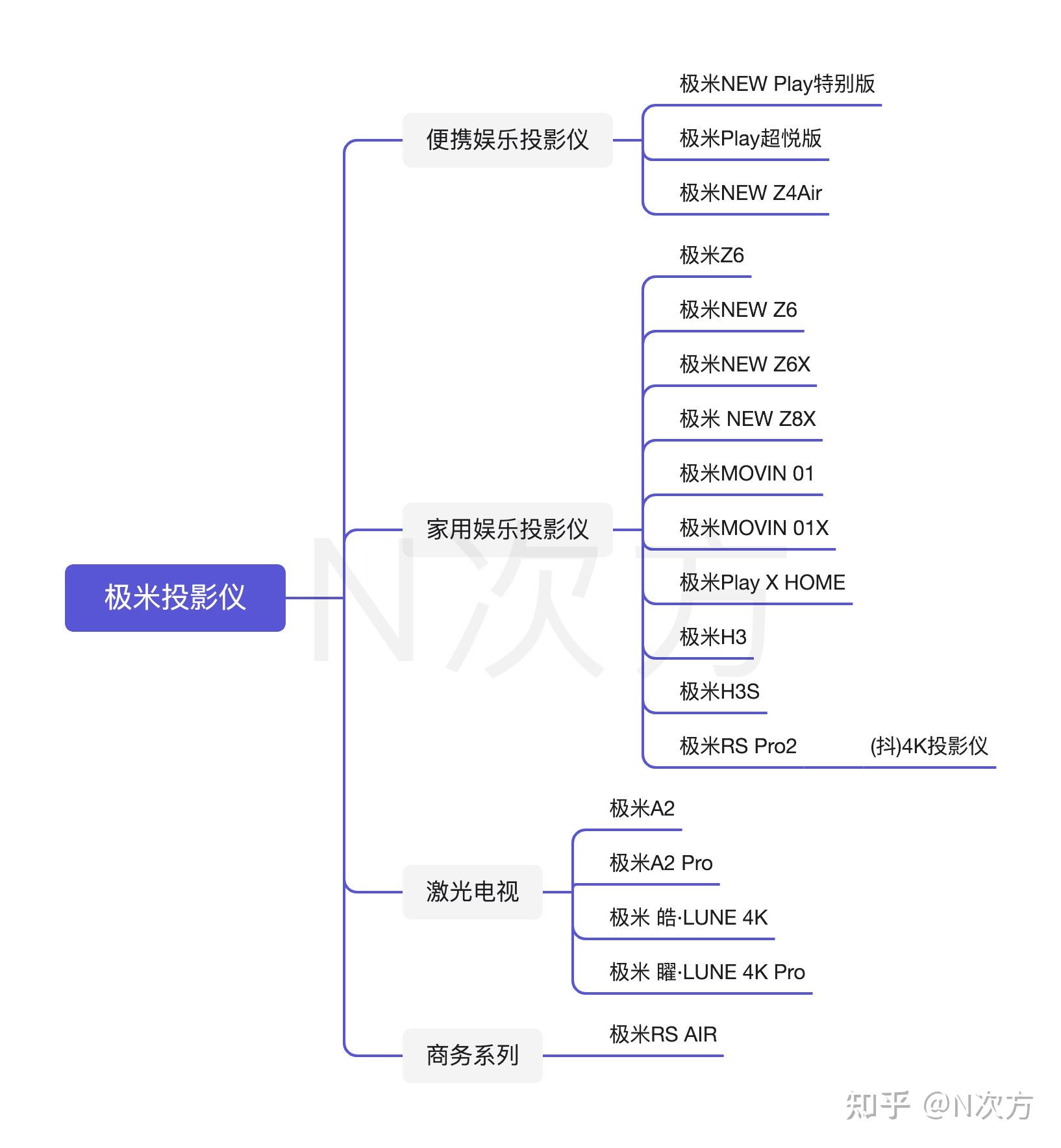 极米的产品相对于其它投影仪品牌机型真的算比较多的,具体的可以看下面这张图;