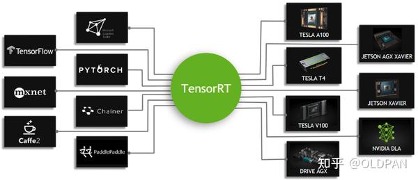 TensorRT是可以在 NVIDIA 各种 GPU硬件平台 下运行的一个 C++推理框架 。我们利用Pytorch、TF或者其他框架训练好的模型,可以转化为TensorRT的格式,然后利用TensorRT推理引擎去运行我们这个模型,从而提升这个模型在英伟达GPU上运行的速度。速度提升的比例是 比较可观 的。