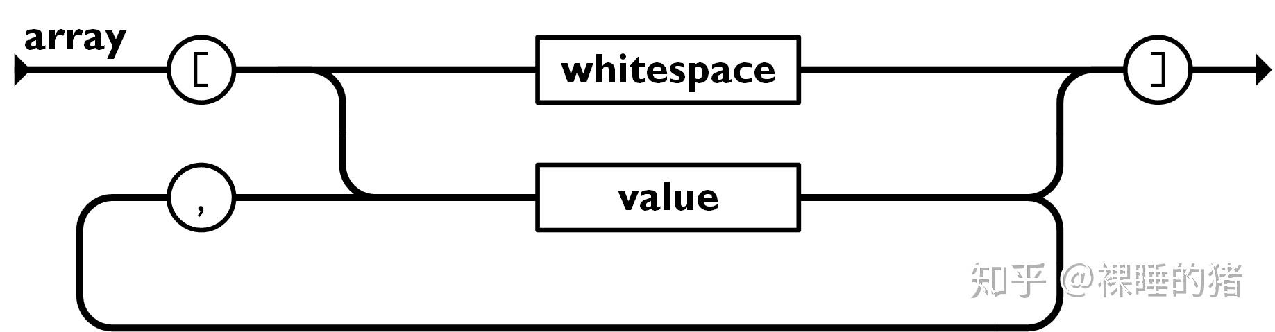 数组形式的JSON数据 就是值(value)的有序集合。一个数组以 [左中括号 开始, ]右中括号 结束。值之间使用 ,逗号 分隔。
