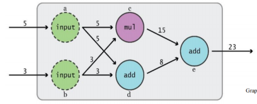 以上过程便是图模型的构建阶段:只在图中定义所需要的运算,而没有去执行运算。我们可以用图1-1来表示: