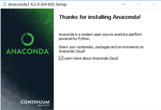 下载好安装包后,一步步执行安装过程,直到出现如图1-1所示的界面,完成Anaconda的安装: