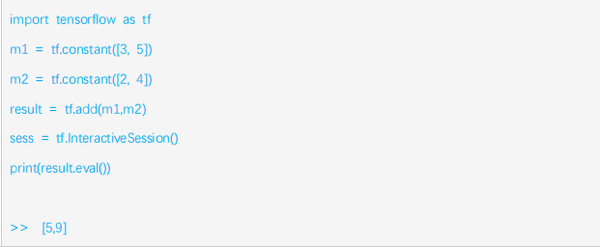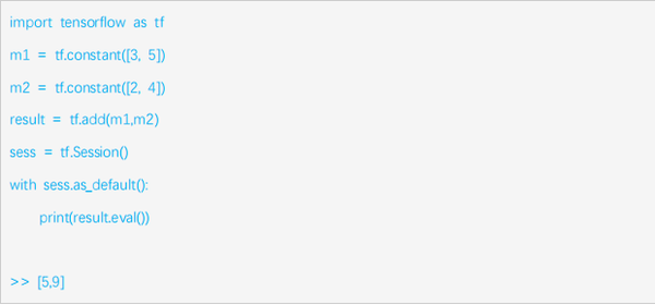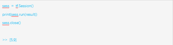 程序2描述了图的执行过程,首先通过“tf.session()”启动默认图模型,再调用run()方法启动、运行图模型,传入上述参数result,执行矩阵的加法,并打印出相加的结果,最后在任务完成时,要记得调用close()方法,关闭会话。