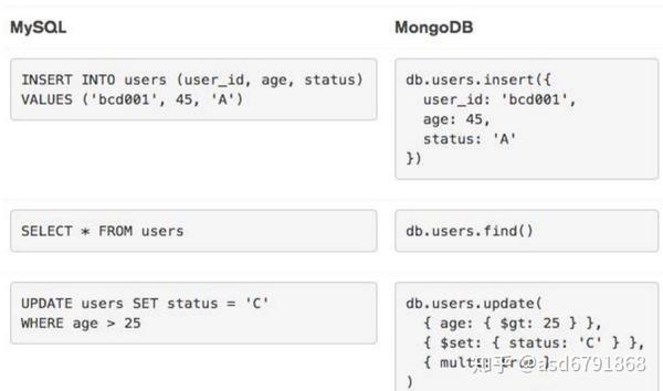 MySQL和MongoDB都有丰富的查询语言。在MongoDB文档 https:// docs.mongodb.com/manual /reference/sql-comparison/?_ga=2.97293983.1414641971.1500188964-1583439788.1500188964 中可以找到一个完整的语句列表。