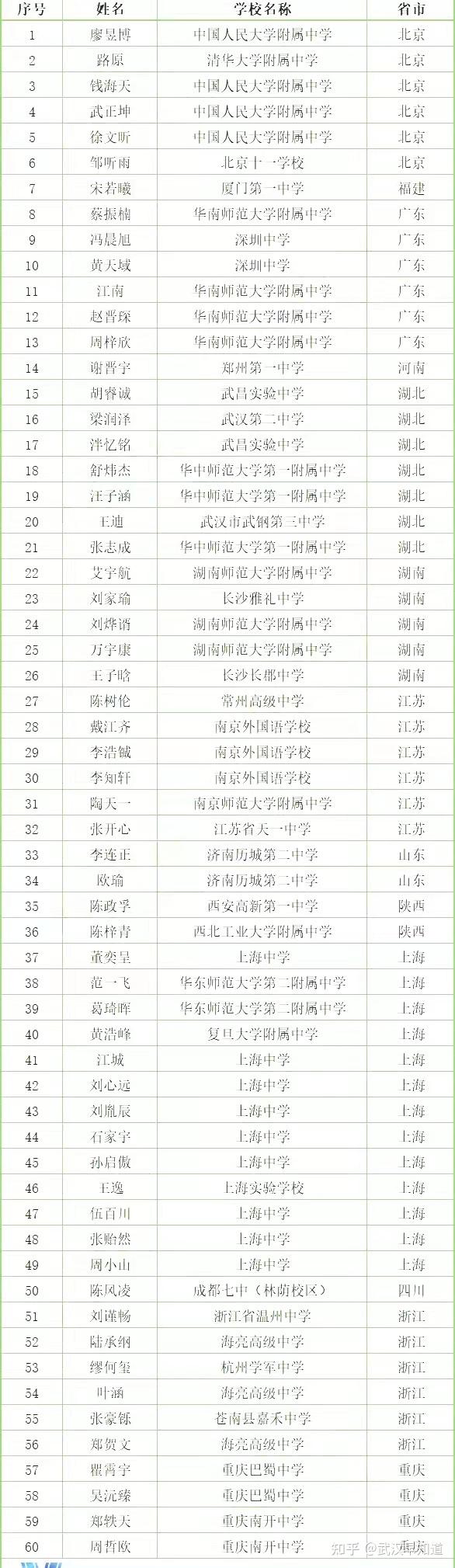 5-9人的16所,人大附、杭州学军、杭州二中、南京外国语、衡水一中、重庆巴蜀以及湖南四大名校的雅礼、长郡等都在这个阶梯。