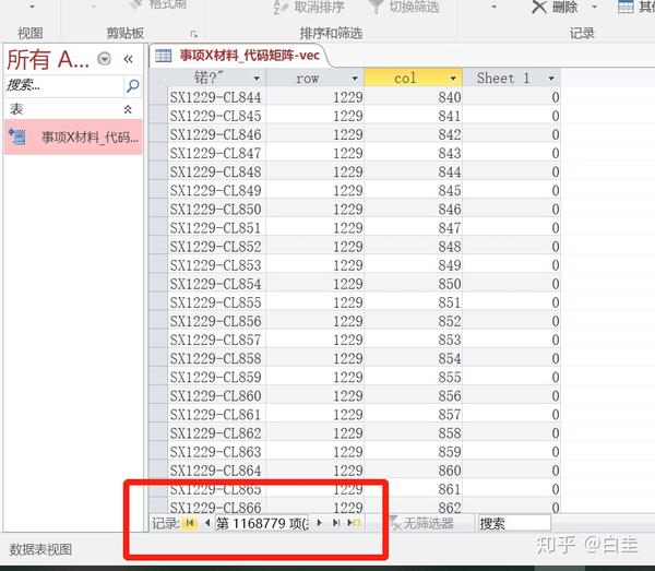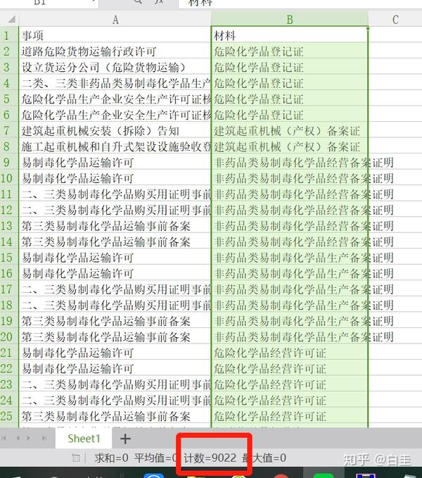 这是一个9022行的数据,我们把这两列数据转换为 事项X材料 的 2-模矩阵 。