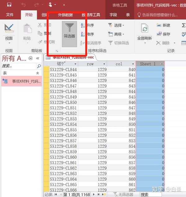 选择sheet1,点击【筛选】,然后选出值为1的数据,就是我想要的内容。